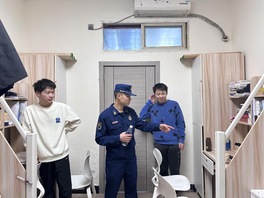 接著,段班長在實訓基地老師的帶領下,對汽車工程學院實訓基地進行消防安全排查,深入學生宿舍對學生寢室進行消防安全檢查,主要從安全出口、疏散指示標志、應急照明燈、滅火器、消火栓、電器線路敷設等情況進行了全面、細致的排查。